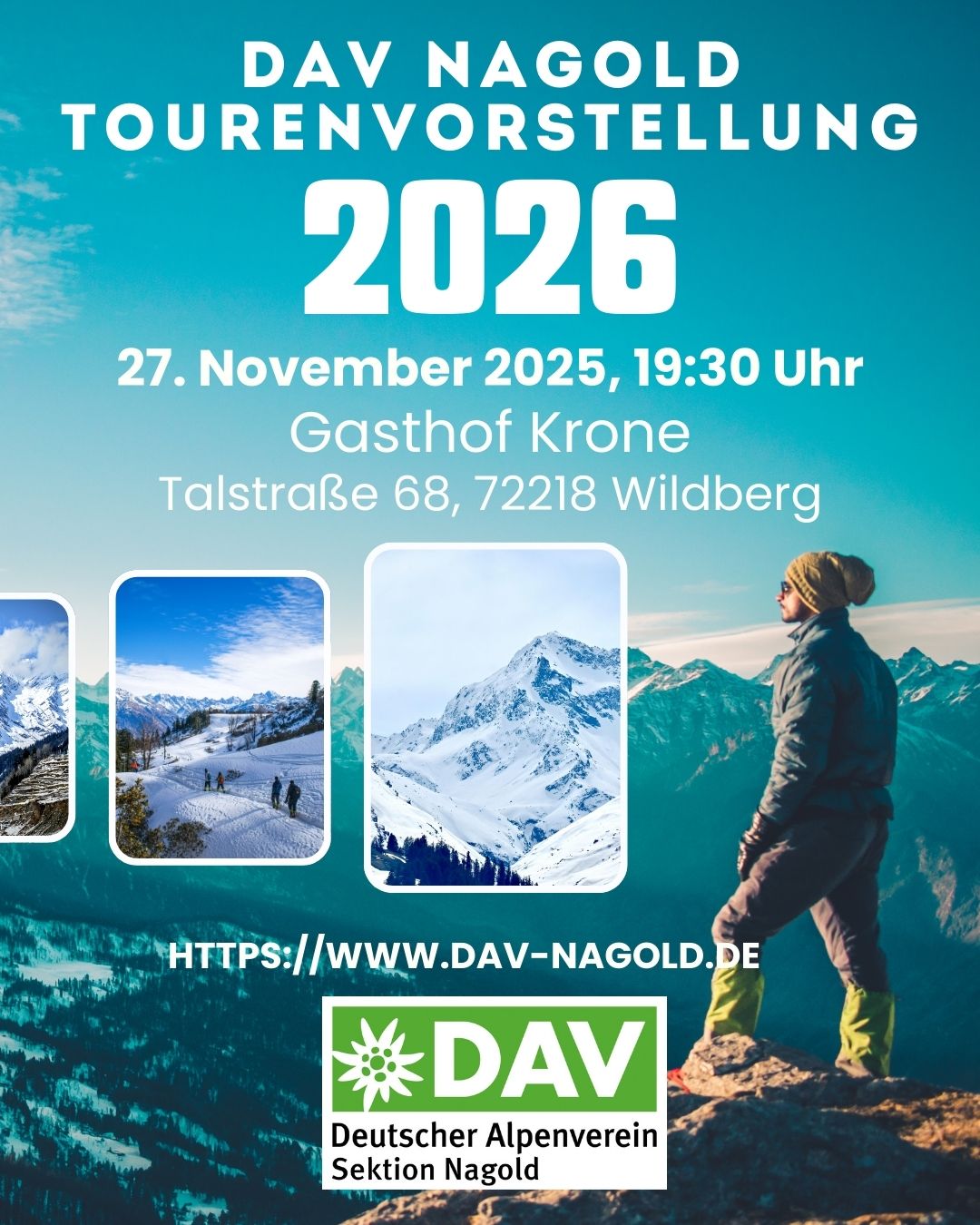 Wir freuen uns Sie bei der Sektion Nagold des Deutschen Alpenverein e.V. zu begrüßen. Die Sektion Nagold wurde im April 2015 neu gegründet und ging aus der Bezirksgruppe Nagold hervor. Wir sind in Nagold der erste Ansprechpartner für alle Sportarten im Outdoor und Alpinen Bereich wie: