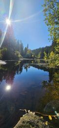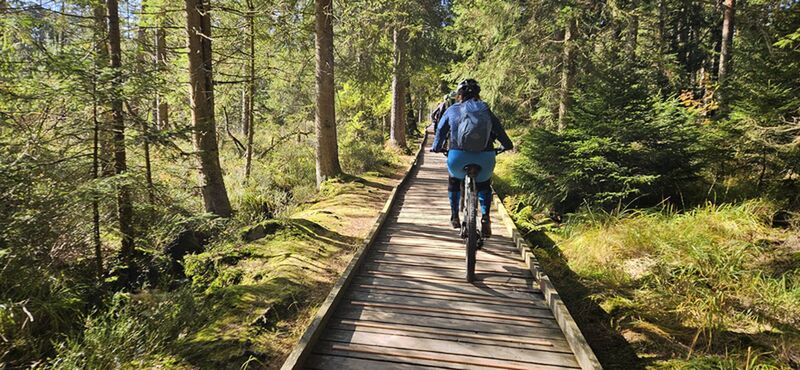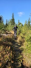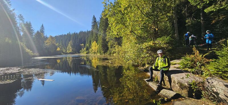 Gestartet wurde bereits bei Sonnenschein in Besenfeld. Nach einer kurzen Einrollphase ging es gleich auf den ersten Trail, der uns zum verwunschenen Poppelsee führte. Die Trails waren leicht feucht, aber bestens zu fahren.