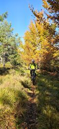 Sechs Teilnehmer der E-MTB-Singletrailgruppe fanden sich am Samstag bei bestem Herbstwetter zu einer Tour zur Grünhütte zusammen.