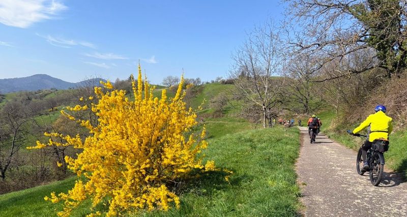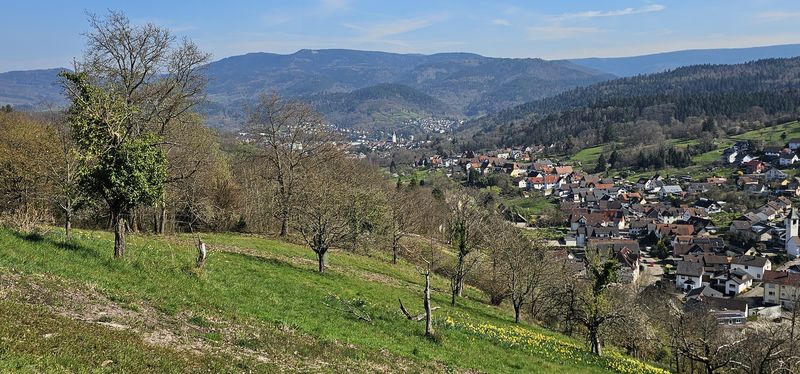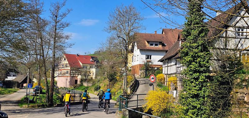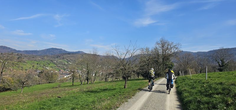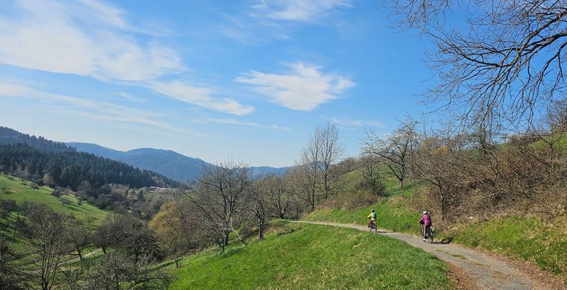 Durch den Weinberg und blühende Narzissen-Wiesen von Staufenberg rollte man wieder hinunter nach Gernsbach. Ab hier folgte der bequeme Murgtal-Radweg hinaus nach Obertsrot.
