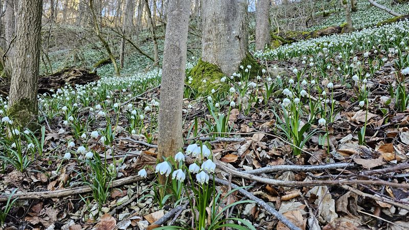 Ziel war die bekannte Märzenbecherblüte bei Bad-Überkingen. Ganze Berghänge sind dort alljährlich zu dieser Jahreszeit mit wunderschön weiß blühenden Märzenbechern bedeckt.
