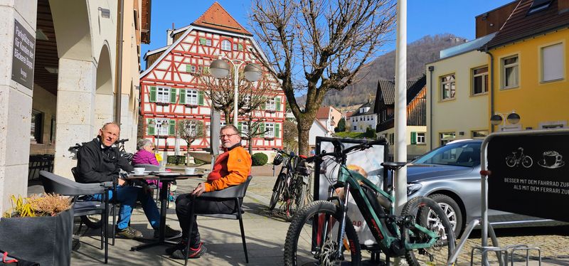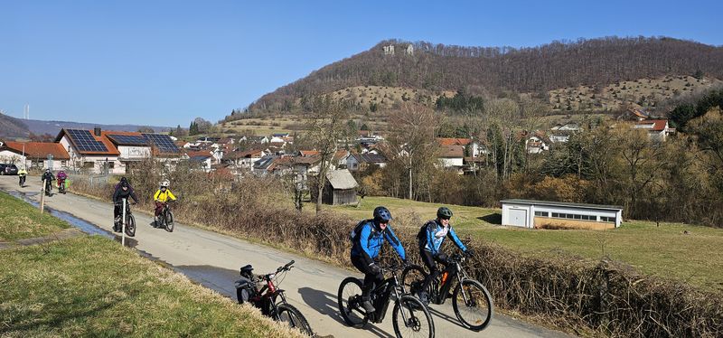 Bei frischem aber sonnigen Wetter mit bis zu 15°C am 5. März 2026 starteten 12 Senioren-Radler des Alpenvereins Calw + Nagold mit Ihrem Guide, Roland Kling zu einer Radausfahrt auf der Schwäbischen Alb.