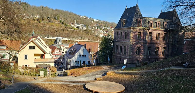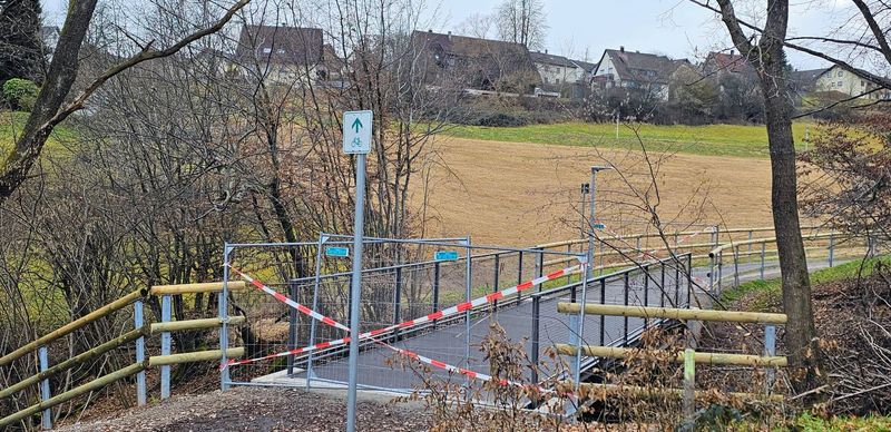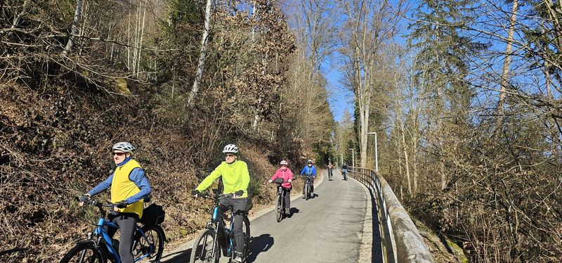 Bei der Fuchsklinge wurden die Radler von der neuen Hermann-Hesse-Bahn überholt, welche seit 1. Februar 2026 hier verkehrt.