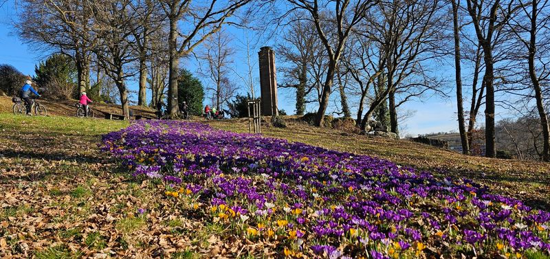 Bei Sonnenschein mit bis zu 20°C starteten 15 Radler des Alpenvereins Calw + Nagold zu der traditionellen Krokusblüten-Tour.