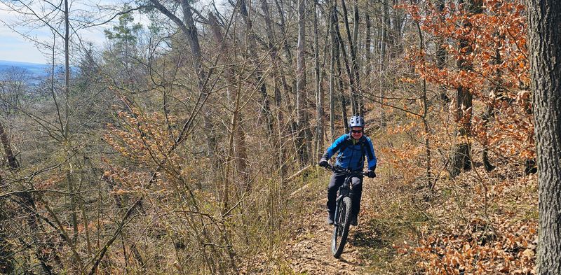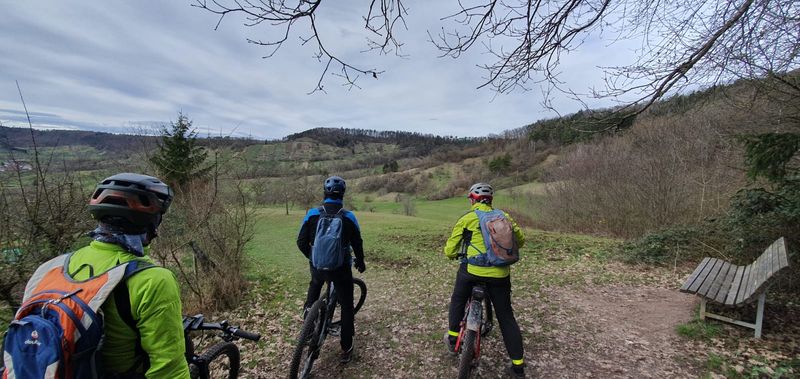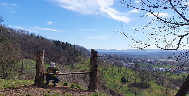 Von hier führten, teils für Mountainbike ausgeschilderte Singletrails entlang des Schönbuches mit immer wiederkehrenden schönen Aussichten ins Gäu und zum Albtrauf.