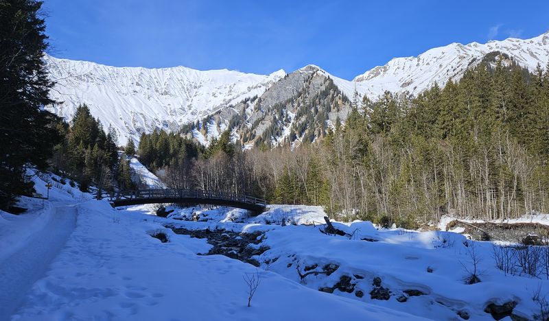Am Sonntag haben wir dann alle Register gezogen: Rodeln, Schneeschuhwandern,